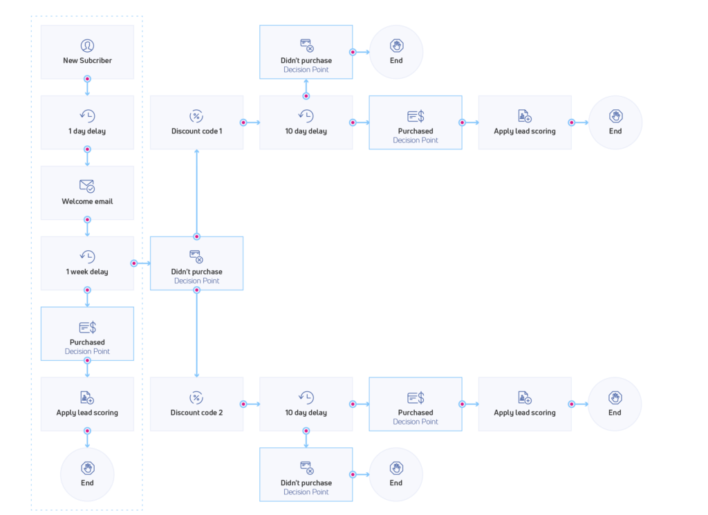 Allow you to create a dynamic sequence of steps that automate paths across the customer lifecycle. Lead your customer down their desired path and boost sales!